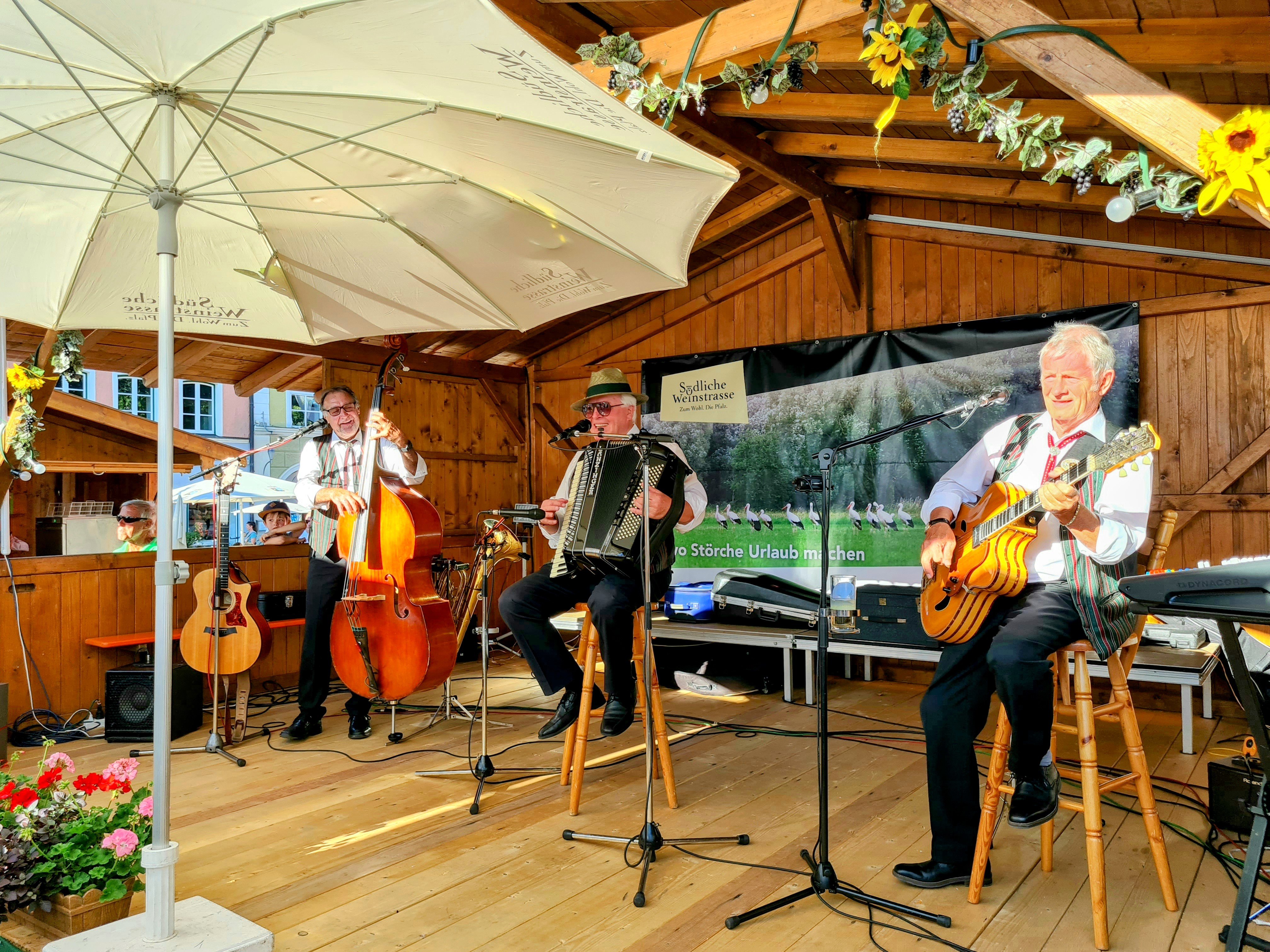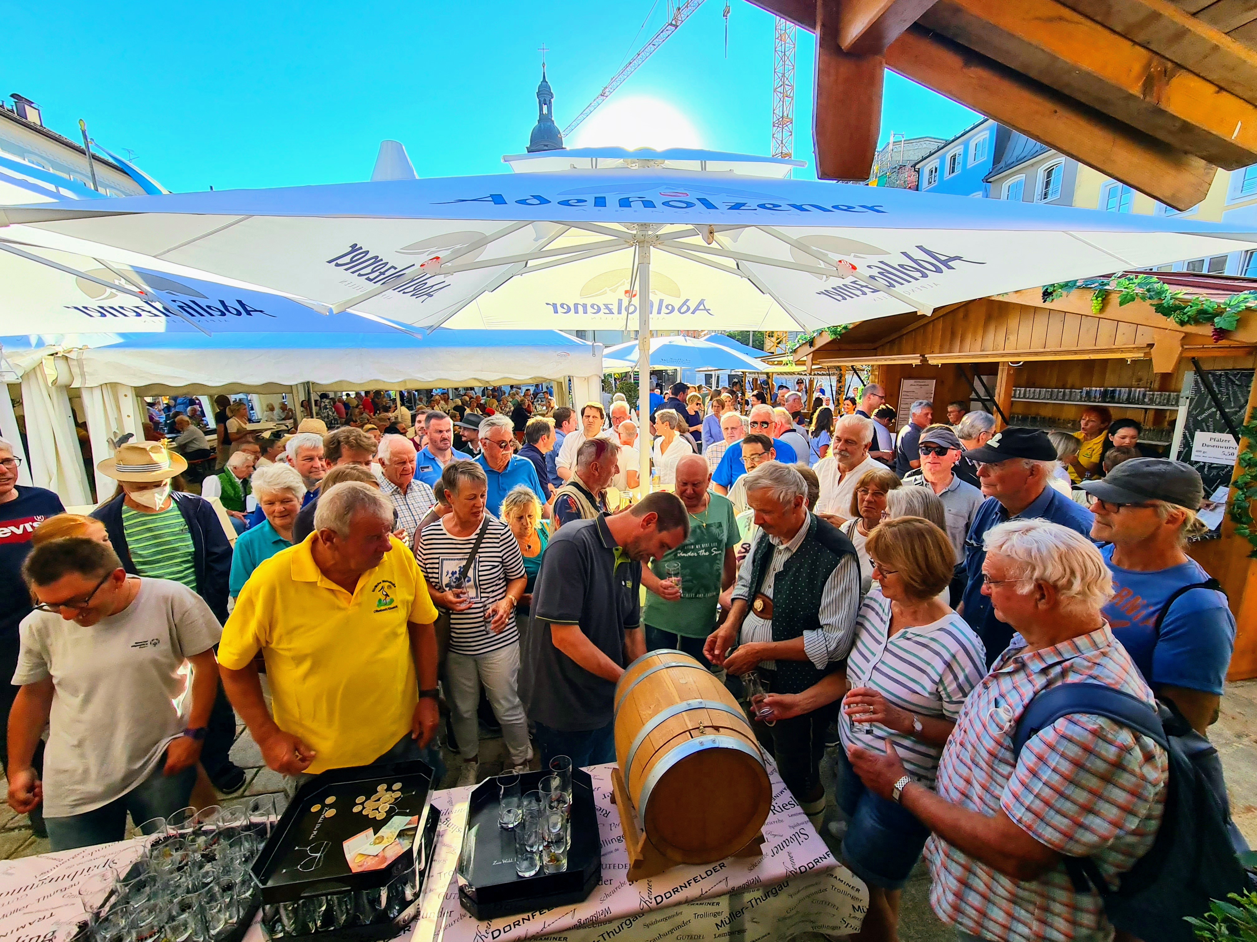 Das weit über die Region des Chiemgaus bekannte Weinfest lädt mit seiner großen Auswahl an Pfälzer Weinen und Sekten zum Feiern und Genießen ein. Am Schoppenstand können Sie auf traditionelle Pfälzer Art die frischen Schoppenweine probieren. Am Weinprobierstand überzeugt Sie die Vielfalt der Rebsorten der verschiedenen Jahrgänge: Frische und aromatische Weißweine und Roséweine, gehaltvolle und fruchtige Rotweine. Aber auch die Pfälzer Küche mit Pfälzer Saumagen, Flammkuchen und Bratwurst, direkt aus der Pfalz angeliefert und vom Brauerei-Ausschank Schnitzlbaumer zubereitet, findet immer großen Zuspruch bei den Besuchern des Pfälzer Weinfestes.