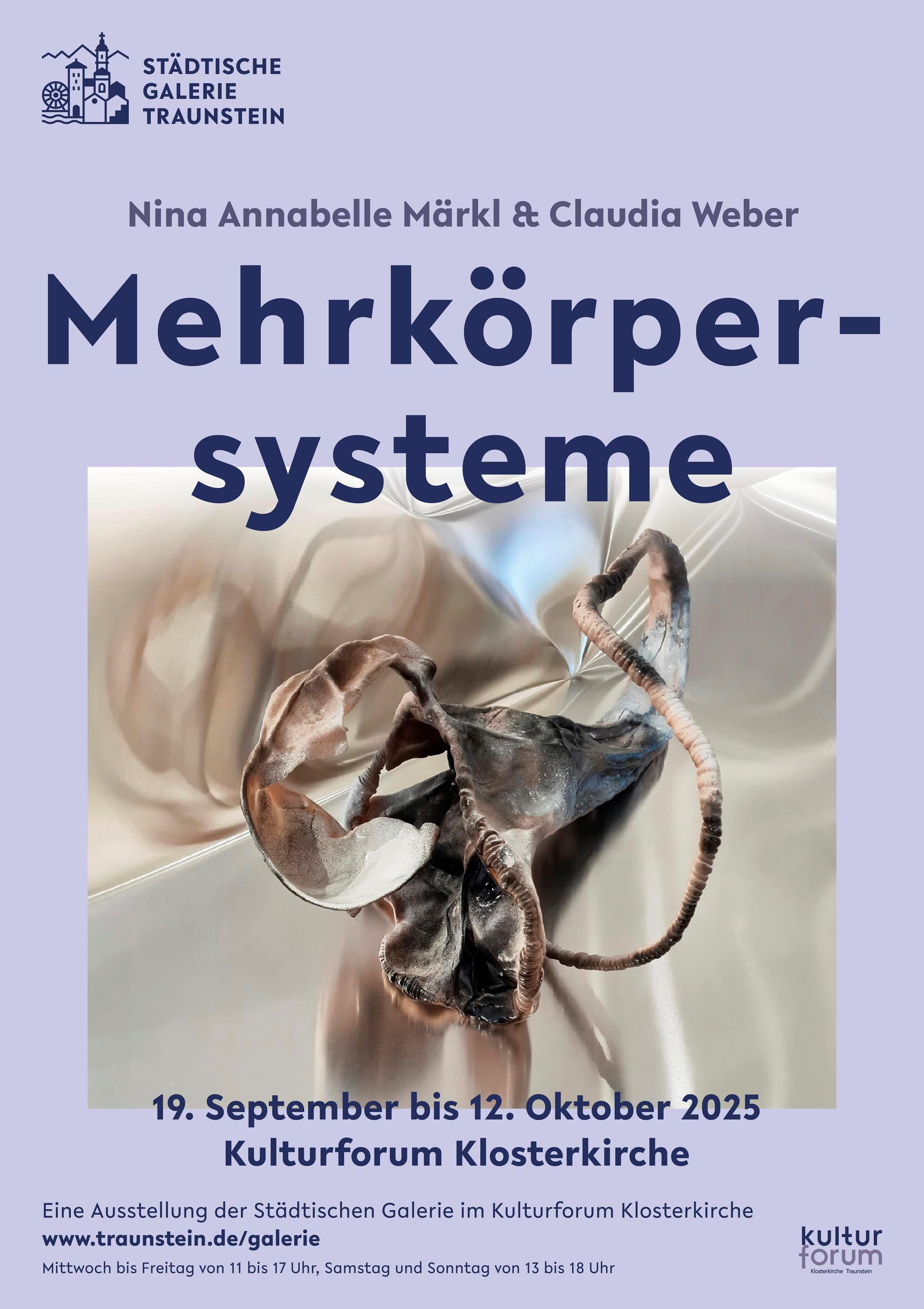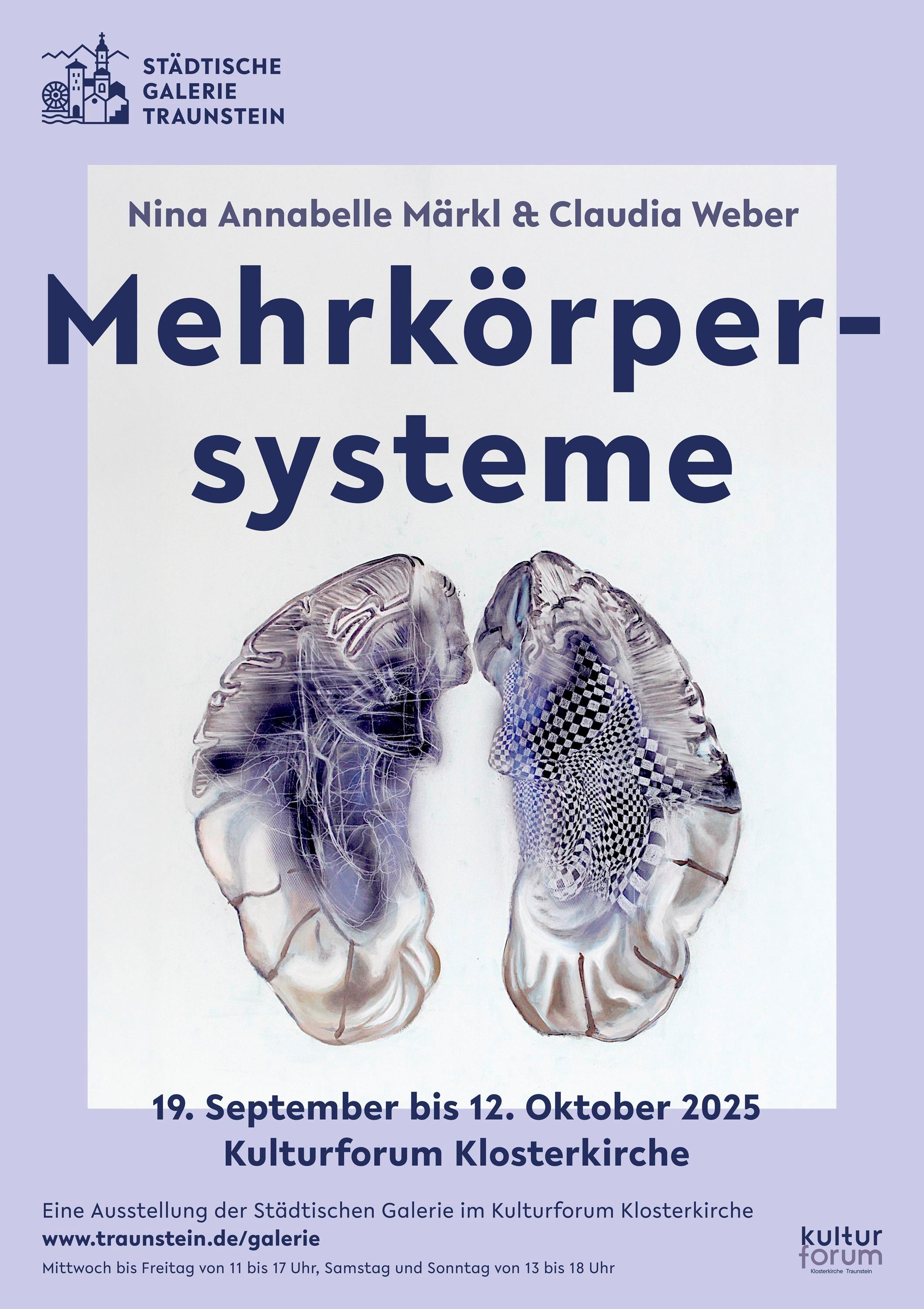 Die Thematisierung der menschlichen Wahrnehmung von Figur und Raum ist das verbindende Element der Ausstellung „Mehrkörpersysteme“ der Künstlerinnen Nina Annabelle Märkl (* 1979, lebt und arbeitet in München) und Claudia Weber (* 1976, lebt und arbeitet in Traunstein). In ihren Zeichnungen und Objekten entfernen sich beide von einem gängigen Abbild der Wirklichkeit und nähern sich der Fragestellung, wie die Welt sinnlich und rational mit künstlerisch-ästhetischen Mitteln begriffen werden kann.